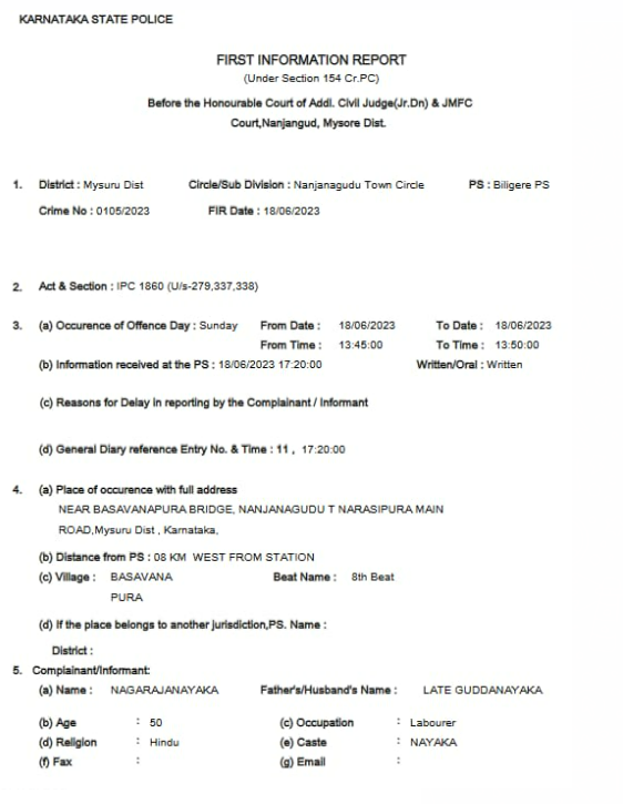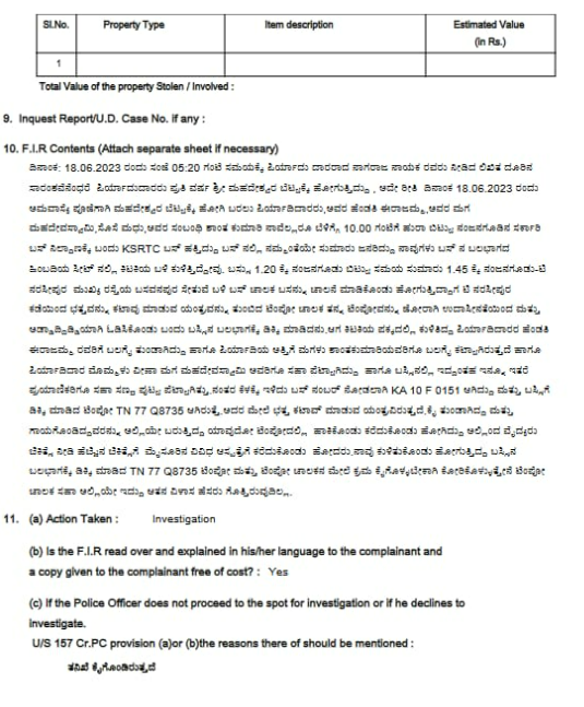 Newschecker also accessed a copy of the FIR filed at the Biligere Police Station in the matter. The FIR copy corroborated with details of the incident shared by the PRO, however, we noticed a mix-up in the names of victims. While the PRO said that Shanta Kumari’s arm was severed, and Rajamma suffered injuries, it was the other way round in the FIR copy.