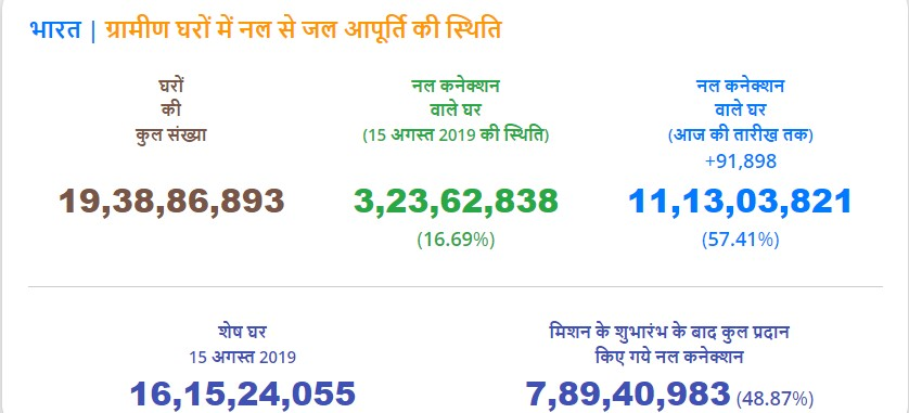યોજનાના વાસ્તવિક સમયના ડેટા અનુસાર, વર્ષ 2020-21માં સૌથી વધુ પાણીના જોડાણો આપવામાં આવ્યા હતા, ત્યારબાદ વર્ષ 2021-22માં 2 કરોડ અને ગયા વર્ષે 1 કરોડ 83 લાખ ઘરોમાં નાદ કનેક્શન આપવામાં આવ્યા હતા.