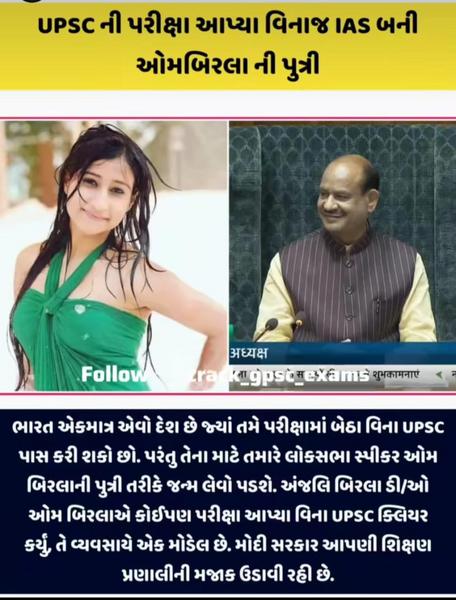 Claim – લોકસભાના સ્પીકર ઓમ બિરલાનાં દીકરી અંજલિ બિરલા યુપીએસસીની પરીક્ષા આપ્યા વગર જ એક્ઝામ ક્લિયર લીધી અને IAS બની ગયા હોવાનો દાવો.
