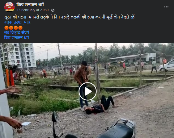 કેટલાક સોશિયલ મીડિયા યુઝર્સે આ ભયાનક ઘટનાનો વિડિયો સાંપ્રદાયિક દાવા સાથે શેર કર્યો છે, જેમાં “હિન્દુઓ” ને “જાગો અને એક થવા” અને “અમારા બાળકો માટે લડવા” વિનંતી કરી છે. ફેસબુક અને વોટ્સએપ પર “लव जिहाद संघर्ष” ટાઇટલ સાથે યુવક મુસ્લિમ હોવાના દાવા સાથે વિડિઓ શેર કરવામાં આવેલ છે.