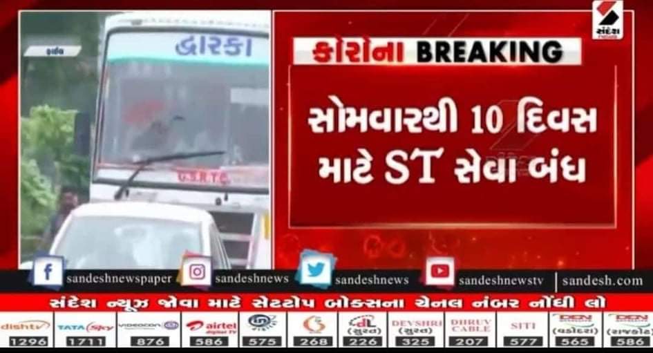 રાજ્યમાં કોરોના વાયરસના કેસ વધતા સાવચેતીના ભાગ રૂપે આગામી 10 દિવસ માટે ST બસ સેવા બંધ કરવામાં આવી હોવાના દાવા અંગે ગુગલ સર્ચ કરતા divyabhaskar અને zeenews દ્વારા 2020માં પ્રકાશિત કરવામાં આવેલ અહેવાલ હોવા મળે છે. જે અનુસાર 27 જુલાઈ 2020માં 10 દિવસ માટે બસ સંચાલન સ્થગિત કરાયું હતું, પરંતુ આ સમયગાળામાં અન્ય ખાનગી વાહન, ગુડ્સ વાહન તથા ટ્રક રાબેતા મુજબ ચાલુ રહેશે.
