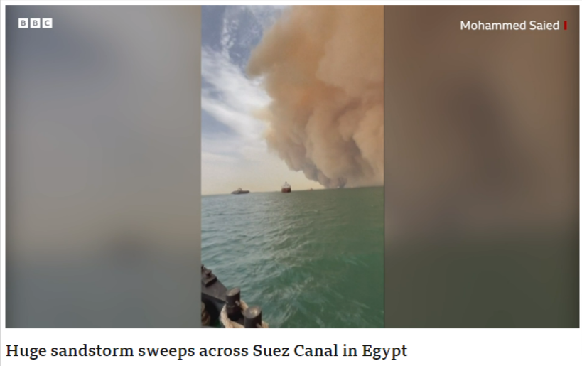 7 જૂન, 2023 ના રોજ યુટ્યુબ ચેનલ ડિઝાસ્ટર કમ્પિલેશન્સ દ્વારા ઇજિપ્તમાં સુએઝ કેનાલને અથડાતા “વિશાળ ધૂળના તોફાન”નો વિડીયો પણ શેર કરવામાં આવેલ છે.