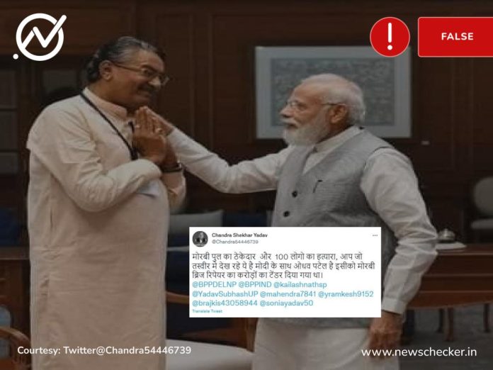 ગુજરાતના મોરબીમાં થયેલા અકસ્માત બાદ સોશિયલ મીડિયા પર એક તસ્વીર વાયરલ થઈ છે. જેમાં પીએમ નરેન્દ્ર મોદી સાથે એક વ્યક્તિ ઉભેલા જોવા મળી રહ્યા છે. દાવો કરવામાં આવી રહ્યો છે કે આ એ જ ઓરેવા ગ્રુપના માલિક છે જેને મોરબી બ્રિજ બનાવવાનો કોન્ટ્રાક્ટ આપવામાં આવ્યો હતો. ઉલ્લેખનીય છે કે વાયરલ તસ્વીરમાં પીએમ મોદી સાથે ગુજરાત ભાજપના કૃષિ મંત્રી રાઘવજી પટેલ છે. વધુ વાંચો..