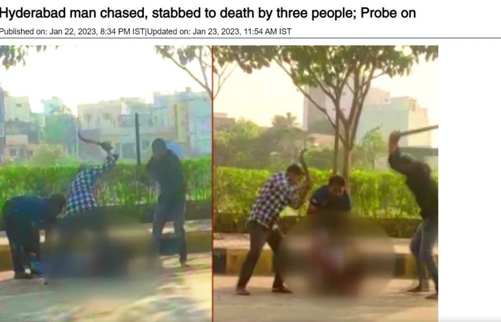અમે વાયરલ વિડિયો પર વપરાશકર્તાએ ટિપ્પણી કરતા જણાવ્યું હતું કે આ ઘટના હૈદરાબાદમાં બનેલ છે. જે ઘટના પર કીવર્ડ સર્ચ કરતા 23 જાન્યુઆરી, 2023ના રોજના ટાઈમ્સ ઓફ ઈન્ડિયાનો અહેવાલ જોવા મળે છે. અહેવાલમાં જણાવવામાં આવ્યું હતું કે, “કથિત રીતે વ્યક્તિગત દુશ્મનાવટના કારણે હૈદરાબાદના જિયાગુડા ખાતે સંપૂર્ણ જાહેર દૃશ્યમાં 30 વર્ષીય વ્યક્તિને ત્રણ માણસોએ મારી નાખ્યો હતો. થોડા જ સમયમાં પસાર થતા લોકો દ્વારા કરવામાં આવેલા ઘાતકી હુમલાના વીડિયો સોશિયલ મીડિયા પર વાયરલ થયો હતો”