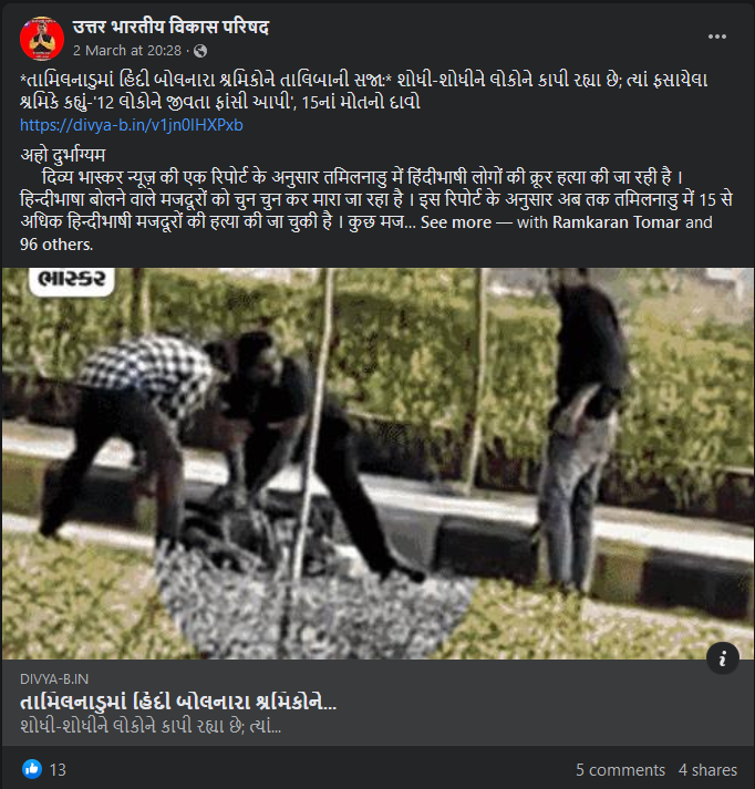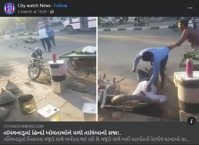 Claim : તામિલનાડુમાં હિન્દી ભાષી બિહારી શ્રમિકોની હત્યા કરવામાં આવી રહી છે તેમજ યાતનાઓ આપવામાં આવી રહી છે.