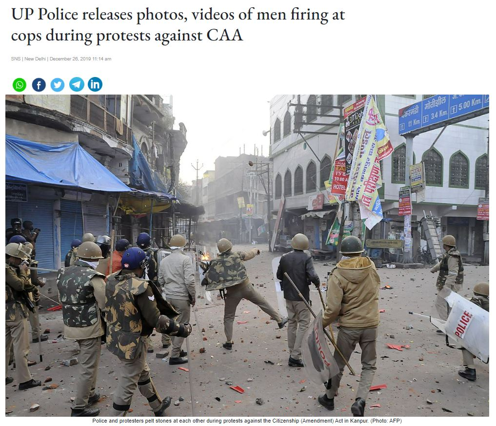ત્રીજી તસવીર રિવર્સ સર્ચ કરતા અમને ‘ધ સ્ટેટ્સમેન‘ની વેબસાઈટ પર ડિસેમ્બર 2019માં પ્રકાશિત એક અહેવાલ મળી આવે છે. રિપોર્ટ અનુસાર, આ તસ્વીર યુપીના કાનપુરની છે, જ્યાં નાગરિકતા સંશોધન કાયદાના વિરોધ દરમિયાન પોલીસ લોકોનો પીછો કરી રહી છે.