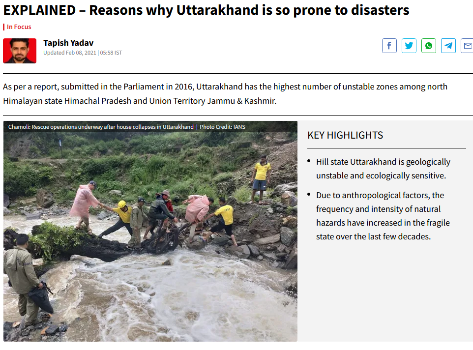 2021ના timesnownewsના એક અહેવાલ સાથે વાયરલ તસ્વીર જોઈ શકાય છે. અહીંયા આપવામાં આવેલ માહિતી મુજબ, ઉત્તરાખંડના ચમોલી જિલ્લાના તપોવન-રેની વિસ્તારમાં ગ્લેશિયર તૂટી પડ્યું ત્યારથી અલકનંદા નદીમાં મોટા પ્રમાણમાં પૂર જોવા મળ્યું હતું.