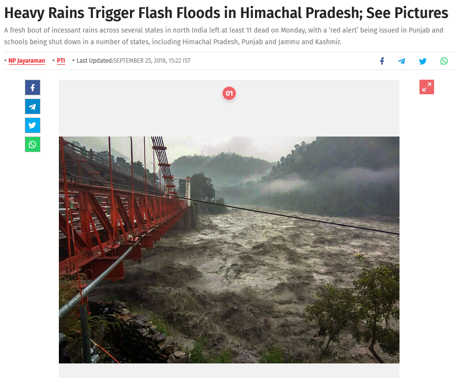 આ વાયરલ તસ્વીર અંગે રિવર્સ સર્ચ કરતા news18 દ્વારા સપ્ટેમ્બર 2018ના પ્રકાશિત થયેલ અહેવાલ જોવા મળે છે. જે મુજબ, 25 સપ્ટેમ્બર, 2018ના રોજ ચમ્બામાં સતત વરસાદ દરમિયાન રાવી નદીમાં પૂરના પાણીનો ભારે પ્રવાહ વહેતો હોવાથી પુલ ક્ષતિગ્રસ્ત જોવા મળ્યો હતો.