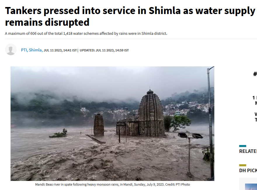 હાલમાં ભારે વરસાદના કારણે હિમાચલમાં અનેક જગ્યાઓ ધોવાઈ ગઈ હતી. જે સંદર્ભમાં અનેક પોસ્ટ જોવા મળી હતી. deccanherald દ્વારા 11 જુલાઈ 2023ના પ્રકાશિત અહેવાલ સાથે વાયરલ તસ્વીર જોઈ શકાય છે. જ્યાં, એક મંદિર ઉપર પાણી ફરી વળ્યું હતું.