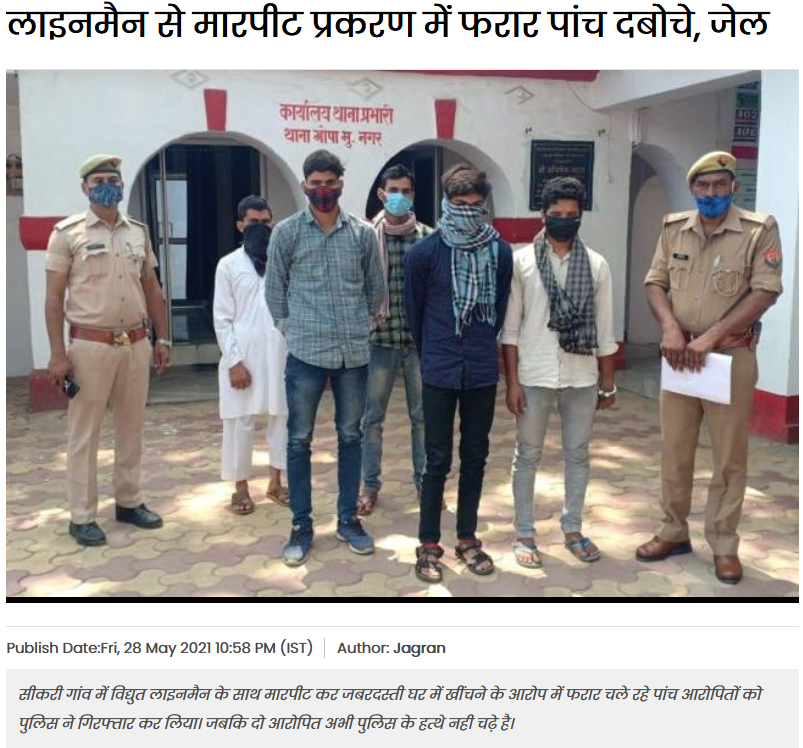 મુઝફ્ફરનગરમાં બનેલ આ ઘટના અંગે વધુ તપાસ કરતા amarujala અને jagran દ્વારા પ્રકાશિત કરવામાં આવેલ અહેવાલ જોવા મળે છે. જે અનુસાર સીકરી ગામમાં વીજ લાઈનમાં ફોલ્ટ રીપેર કરવા આવતા લાઈનમેનને બંધક બનાવી મારામારી કરવામાં આવી હતી. જયારે આ અંગે મુઝફ્ફરનગર ભોપા પોલીસ દ્વારા 5 આરોપી સલમાન, અયાઝ, રફી, ખાલિદ, નાઝ, આસ મોહમ્મદ, આબિદ અને સિકરીના અજાણ્યા રહેવાસી સામે ગંભીર કલમો હેઠળ કેસ નોંધ્યો હતો.