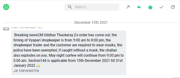 It is in this backdrop that a viral forward which reads, ‘CM Uddhav Thackeray ji’s order has come out,’ on Omicron is being shared on WhatsApp and Facebook.
