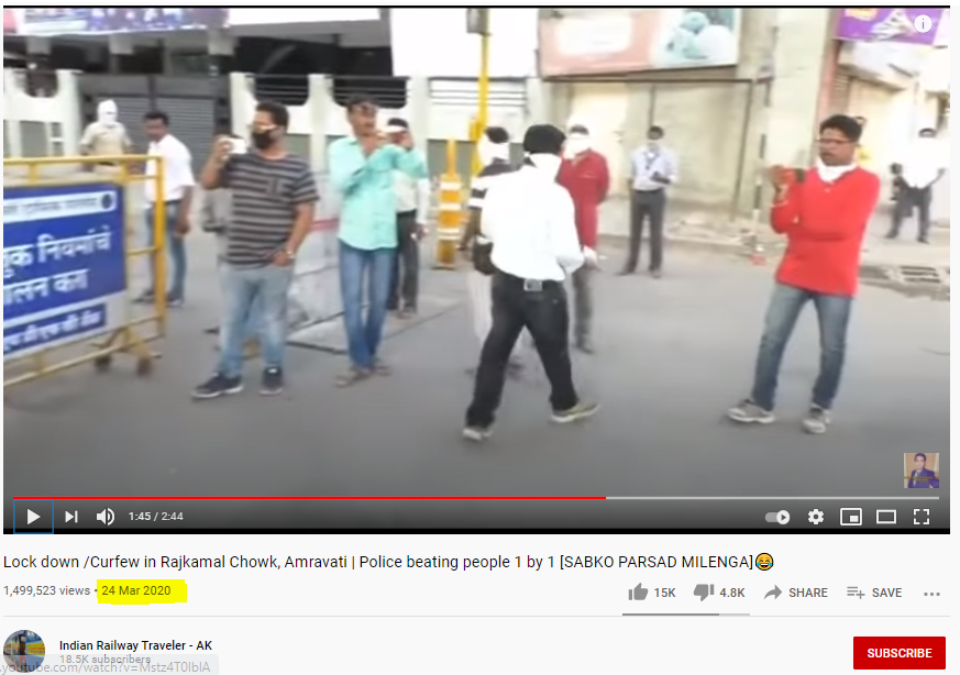 महाराष्ट्र में कोरोना के मामलों में एक बार फिर से बढ़ोतरी हो रही है। इसी को देखते हुए अमरावती में 8 मार्च तक के लिए लॉकडाउन लगाया गया है। ऐसे में सोशल मीडिया पर 45 सेकेंड की एक वीडियो वायरल हो रही है। वीडियो में देखा जा सकता है कि दो पहिया वाहनों पर जा रहे लोगों को कुछ लोग लाठी मारकर भगा रहे हैं। इस वीडियो को शेयर करते हुए दावा किया जा रहा है कि यह वीडियो अमरावती शहर में हाल ही में लगे लॉकडाउन की है।