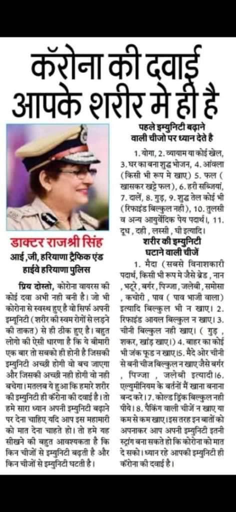 अपनी पड़ताल के दौरान हमें कई ऐसे पोस्ट्स मिले जिसमें यही दावा एम्स की डॉक्टर उमा कुमार के अलावा दो अन्य लोगों के नाम भी शेयर किया जा रहा है। इनमें से एक प्राकृतिक चिकित्सक डॉक्टर मदन तथा दूसरी हरियाणा पुलिस में आईजी के पद पर तैनात डॉक्टर राजश्री सिंह हैं. इसके साथ ही हमने यह भी पाया कि वायरल कटिंग में कई व्याकरणीय गलतियां हैं, जो कि अमूमन प्रतिष्ठित न्यूज़ तथा मीडिया संस्थानों द्वारा प्रकाशित लेखों में देखने को नहीं मिलती हैं.