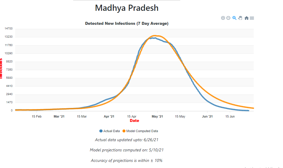 Sutra-india.in पर जारी आंकड़ों के मुताबिक मध्य प्रदेश में भी कोरोना वायरस के मामलों में भारी गिरवाट देखी जा सकती है।