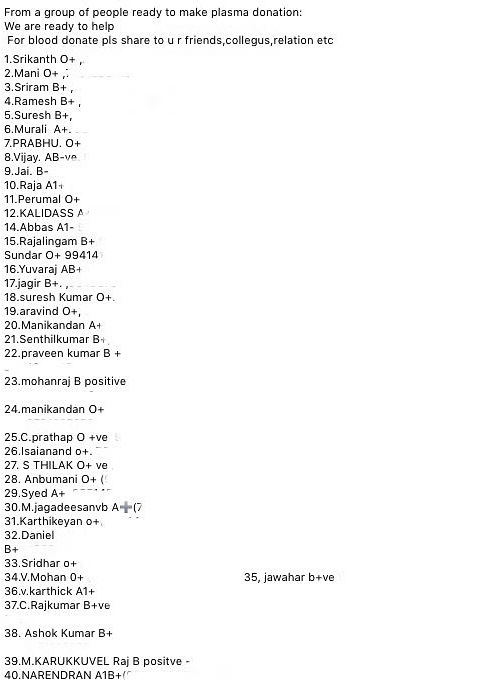 इस संकट के बीच जिसके पास जितनी भी जानकारी है, वो उसे अपने सोशल मीडिया अकाउंट पर शेयर कर रहा है। ताकि लोगों की मदद हो सके। इसी बीच WhatsApp ग्रुप्स पर एक पोस्ट खूब वायरल हो रही है। जिसमें लिखा हुआ है कि यदि दिल्ली एनसीआर में किसी को प्लाज्मा की जरूरत है, तो वो इन लोगों से संपर्क करें और नीचे प्लाज्मा डोनर के ब्लड ग्रुप को बताते हुए कुछ लोगों के नंबर दिए गए हैं।