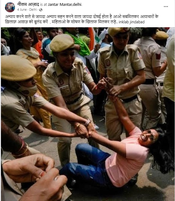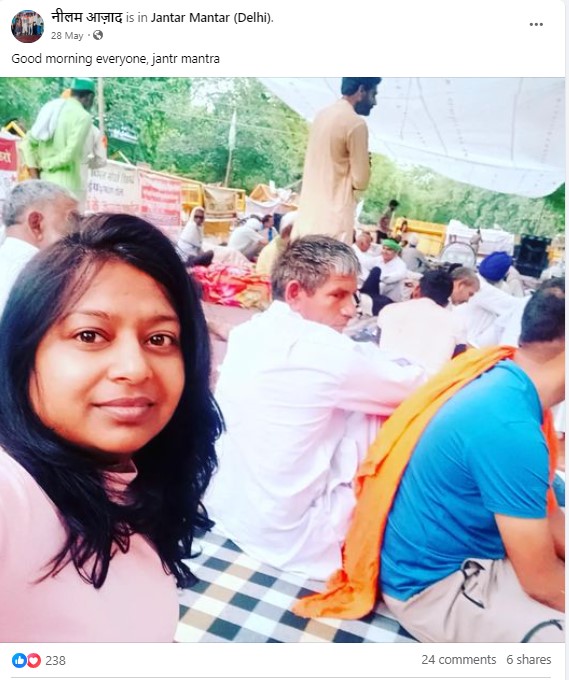 नीलम के अकाउंट्स पर अपलोड किए गए फ़ोटो के अनुसार, वह पहलवान आंदोलन समेत हरियाणा और खासकर जींद और नरवाना इलाके में बेरोजगारी, जातीय भेदभाव, मजदूरों और किसानों से जुड़े मुद्दों को लेकर हुए आंदोलनों में काफ़ी सक्रिय रही हैं. उन्होंने इन आंदोलनों की तस्वीरें अपने सोशल मीडिया अकाउंट पर भी साझा की हैं. आप इनमें से कुछ तस्वीरों को नीचे देख सकते हैं.
