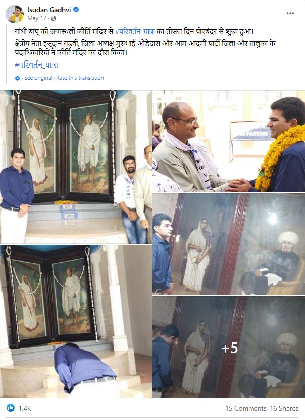 इसुदान गढ़वी ने 17 मई को ही महात्मा गांधी की जन्मस्थली कीर्ति मंदिर से परिवर्तन रैली का तीसरा दिन शुरू करने को लेकर एक फेसबुक पोस्ट किया था।
