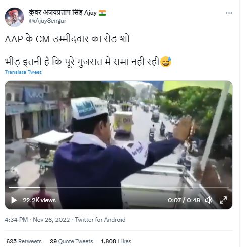 गौरतलब है कि गुजरात में चार नवंबर 2022 को इसुदान गढ़वी को आम आदमी पार्टी ने सीएम कैंडिडेट घोषित किया था। जबकि वायरल वीडियो करीब 5 महीने पुराना है।