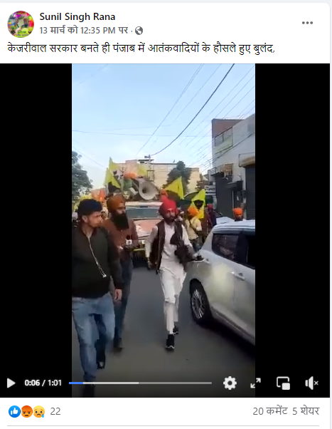 सोशल मीडिया पर एक वीडियो शेयर कर दावा किया गया कि पंजाब में आम आदमी पार्टी की जीत के बाद खालिस्तान जिंदाबाद के नारे लगाए गए।