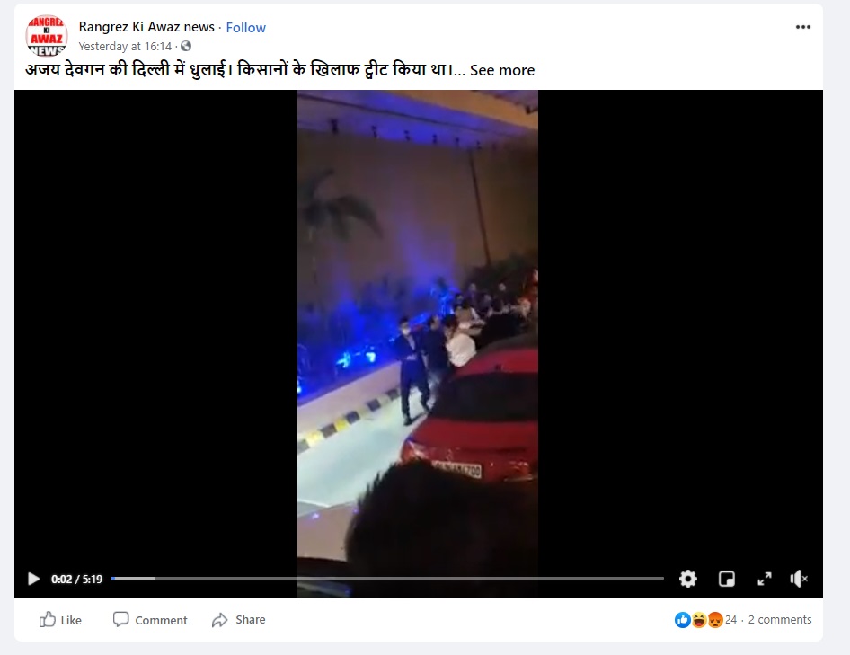 इस दौरान लोगों ने एयरपोर्ट पर अजय देवगन की पिटाई कर दी। जिसका वीडियो वायरल हो गया। जबकि कई यूजर्स इस वीडियो को शेयर करते हुए दावा कर रहे हैं कि प्रदर्शन कर रहे किसानों के समर्थकों ने अजय देवगन को दिल्ली के एयरपोर्ट पर पीटा है।