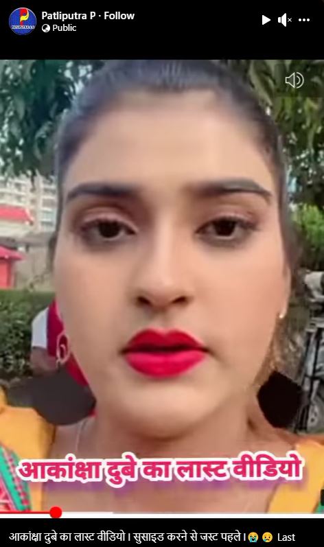 गौरतलब है कि ‘एबीपी न्यूज’ और ‘बिहार तक’ समेत कई मीडिया संस्थानों ने आकांक्षा दूबे का आखिरी वीडियो अपने यूट्यूब चैनल पर अपलोड किया है। इसमें आकांक्षा दूबे सोशल मीडिया पर लाइव आकर रोते हुए नज़र आ रही हैं। हालांकि, हम स्वतंत्र रूप से इसकी पुष्टि नहीं करते हैं।