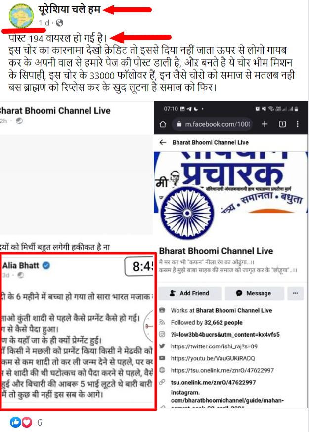 Facebook posts shared by ‘यूरेशिया चले हम’ page
