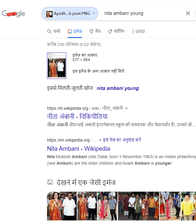 अंबानी परिवार ने अयोध्या में सौर उर्जा प्लांट लगाने का ऐलान किया है, दावे के साथ सोशल मीडिया पर वायरल हो रही तस्वीर की सत्यता जांचने के लिए, हमने वायरल तस्वीर को गूगल रिवर्स की मदद से खोजना शुरू किया। इस दौरान हमें अपनी पड़ताल में Mid Day पर 12 फरवरी 2019 को प्रकाशित एक रिपोर्ट प्राप्त हुई।रिपोर्ट के मुताबिक, मुकेश अंबानी ने पत्नी नीता अंबानी और बेटे अनंत अंबानी के साथ अपने दूसरे बेटे आकाश अंबानी और श्लोका मेहता की शादी का पहला निमंत्रण कार्ड देने के लिए मुंबई के प्रभादेवी में सिद्धिविनायक मंदिर का दौरा किया। लेकिन रिपोर्ट में अंबानी परिवार द्वारा अयोध्या में सौर उर्जा प्लांट लगाए जाने के ऐलान संबंधित कहीं कोई जिक्र नहीं मिला।