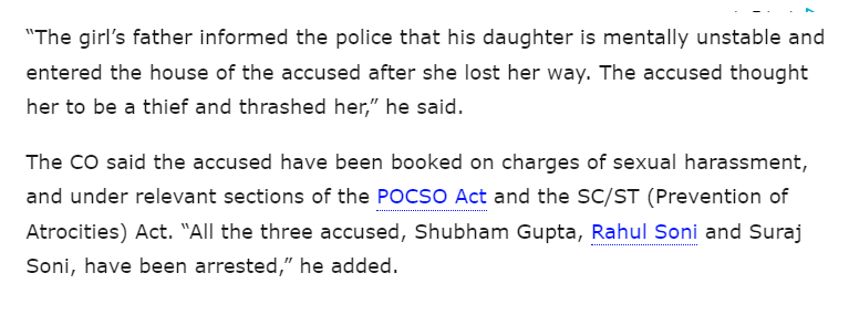 रिपोर्ट में तत्कालीन क्षेत्राधिकारी अर्पित कपूर के हवाले से यह भी बताया गया था कि नाबालिग लड़की के पिता ने पुलिस को यह जानकारी दी कि उसकी बेटी की मानसिक स्थिति सही नहीं है. इसी वजह से वह अपना रास्ता भटक गई थी और आरोपी के घर में घुस गई थी. जिसके बाद आरोपियों ने उनकी बेटी को चोर समझकर पीटा था.
