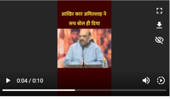 वायरल वीडियो 10 सेकेंड का है, जिसमें अमित शाह एक प्रेस कांफ्रेंस में यह बोलते हुए नज़र आ रहे हैं कि “प्रधानमंत्री जी की जो डिग्रियां हैं वह फ़र्ज़ी है, सच नहीं है”. वीडियो में ऊपर एक टेक्स्ट भी मौजूद है, जिसमें लिखा हुआ है, “आखिरकार अमित शाह ने सच बोल ही दिया”.