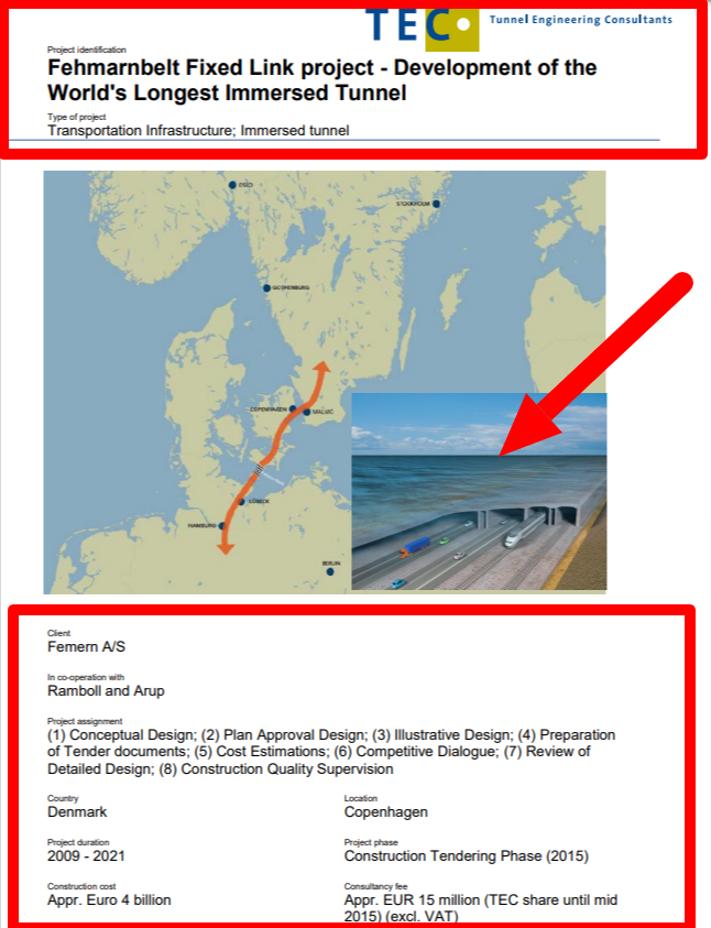 Tunnel Engineering Consultants (TEC) नामक संस्था ने इस तस्वीर को डेनमार्क और जर्मनी को जोड़ने वाले Fehmarnbelt Fixed Link प्रोजेक्ट का बताया है. बता दें कि उक्त सुरंग का डिज़ाइन TEC ने ही बनाया था.