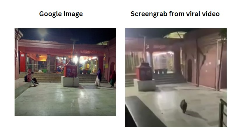 अयोध्या में बंदर द्वारा हर रात मंदिर जाकर दर्शन करने के नाम पर शेयर किए जा रहा यह दावा पूर्व में भी वायरल हो चुका है, जिसके बाद Newschecker द्वारा तमिल, अंग्रेजी तथा मलयालम भाषाओं में इसकी पड़ताल की जा चुकी है. वीडियो में एक व्यक्ति को यह कहते सुना जा सकता है कि “बाबा बुद्धेश्वर धाम आते हैं ये… रोज आते हैं ये…”. हमारी पड़ताल के अनुसार, उपरोक्त जानकारी के आधार पर Google पर मौजूद श्री बुद्धेश्वर महादेव मंदिर की तस्वीरों का वायरल वीडियो के एक दृश्य से मिलान किया. इस प्रक्रिया में हमें यह जानकारी मिली कि वीडियो लखनऊ स्थित बुद्धेश्वर महादेव मंदिर का है.