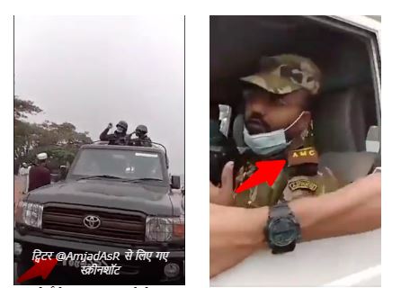 इसके अलावा, सेना की गाड़ी का नंबर प्लेट बंगाली भाषा में लिखा हुआ है. वाहनों में दिख रहे सैनिकों की वर्दी के कंधों पर ‘AMC’ लिखा हुआ है। इस लोगो को गूगल सर्च करने पर पता चला कि ये बांग्लादेश आर्मी मेडिकल कॉलेज के जवान हैं।