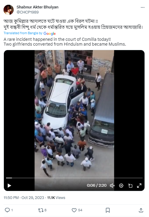 इसके बाद हमने वकील हुसैन आसिफ से भी संपर्क किया. उन्होंने भी बताया कि “यह वीडियो 29 अक्टूबर 2023 का कूमिला कोर्ट का है. दरअसल मई 2023 में कूमिला की रहने वाली दो हिंदू लड़कियों ने अपनी स्वेच्छा से इस्लाम धर्म अपना लिया था. इसके बाद लड़कियों के परिजनों ने देवीद्वार थाने में शिकायत दर्ज कराई थी. जिसके बाद लड़कियों को सेफ होम में भेज दिया गया था. इसके करीब पांच महीने बाद जब कूमिला कोर्ट में लड़कियां अपने परिवार वालों के सामने आईं तो उनकी मां ने दोनों को अपने साथ ले जाने की कोशिश की. इस दौरान उसकी मां बेहोश होकर गिर गई थीं”.