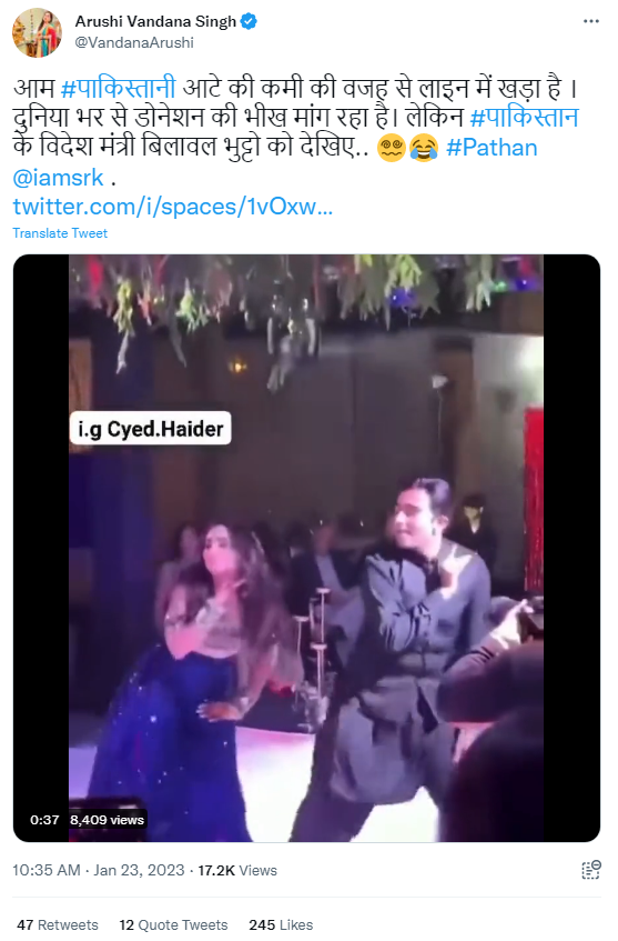 सोशल मीडिया पर एक वीडियो शेयर कर यह दावा किया गया कि पाकिस्तान के विदेश मंत्री बिलावल भुट्टो जरदारी ने पठान फिल्म के ‘बेशरम रंग’ गाने पर डांस किया.