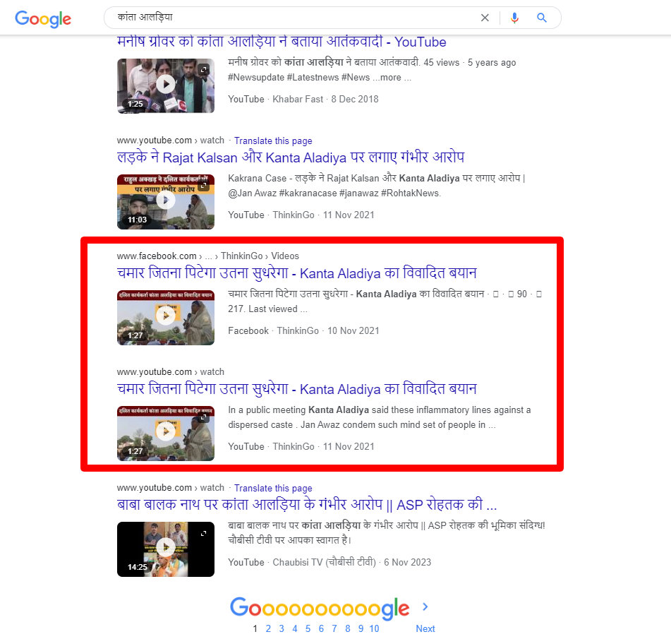 उक्त जानकारी की सहायता से ‘कांता आलड़िया’ कीवर्ड्स को गूगल पर ढूंढा. इस प्रक्रिया में हमें 11 नवंबर 2021 को शेयर किया गया एक पोस्ट प्राप्त हुआ, जिसमें वायरल वीडियो का एक लंबा वर्जन मौजूद है.