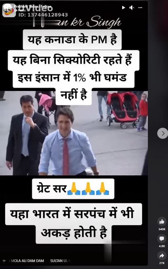 सोशल मीडिया पर एक वीडियो शेयर कर दावा किया जा रहा है कि कनाडा के पीएम जस्टिन ट्रूडो बिना सुरक्षा के रहते हैं।