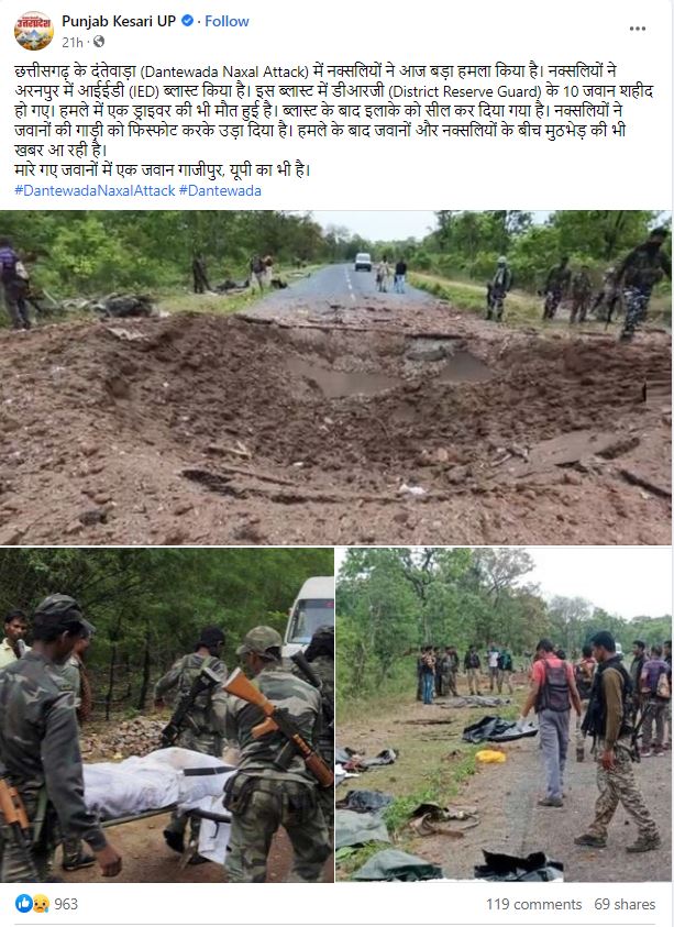 Fact Check: दंतेवाड़ा में हुए हालिया नक्सली हमले का बताकर वायरल हुई पुरानी तस्वीर