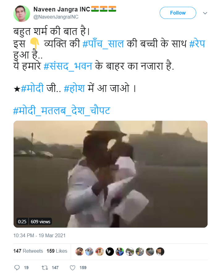सोशल मीडिया पर एक वीडियो शेयर कर यह दावा किया गया कि पांच वर्षीया रेप पीड़िता के पिता ने संसद भवन के सामने प्रदर्शन किया.