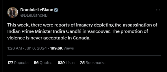 X post by Dominic LeBlanc on 8th June 2024.