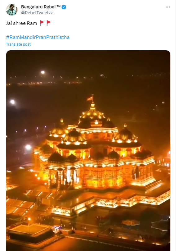 इसी बीच सोशल मीडिया पर रोशनी से सराबोर एक मंदिर की तस्वीर काफ़ी वायरल हो रही है, जिसे अयोध्या के राम मंदिर का बताकर शेयर किया जा रहा है. हालांकि, हमने अपनी जांच में पाया कि यह अयोध्या का राम मंदिर नहीं, बल्कि दिल्ली में मौजूद अक्षरधाम मंदिर है.