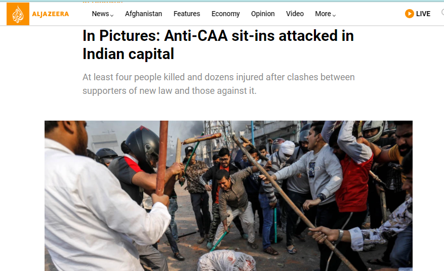 ALJAZEERA News Paper- https://www.aljazeera.com/gallery/2020/2/24/in-pictures-anti-caa-sit-ins-attacked-in-indian-capital/