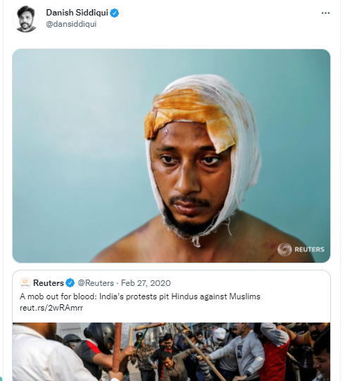 वायरल तस्वीर का सच जानने के लिए, कुछ कीवर्ड्स की सहायता से ट्विटर पर पुलित्जर पुरस्कार विजेता भारतीय फोटो पत्रकार दानिश सिद्दीकी के ट्विटर हैंडल को खंगाला, तो हमें उनके द्वारा 27 फरवरी 2020 को शेयर किया गया एक पोस्ट मिला, जो वायरल हो रहे तस्वीर की पुष्टि करता है कि यह तस्वीर कश्मीर की नहीं, बल्कि दिल्ली में CAA प्रदर्शन के दौरान हुई हिंसा का है। पत्रकार दानिश सिद्दीकी द्वारा किए गए ट्वीट को आप यहां देख सकते हैं।