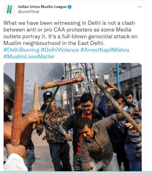 पड़ताल के दौरान, ट्विटर पर और अधिक खोजने पर हमें ‘भारतीय संघ मुस्लिम लीग’ के ट्विटर हैंडल द्वारा 25 फरवरी को शेयर किया गया एक पोस्ट मिला, जो वायरल हो रहे तस्वीर की पुष्टि करता है।
