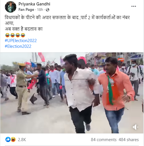 उपरोक्त फेसबुक पोस्ट के कैप्शन लिखा गया है,“विधायकों के पीटने की अपार सफलता के बाद ,पार्ट 2 में कार्यकर्ताओं का नंबर आया, अब वक्त है बदलाव का. #UPElection2022 #Election2022”.