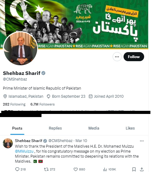 जांच में आगे हमने शहबाज शरीफ का आधिकारिक एक्स अकाउंट खंगाला, जहां हमने देखा कि उनके आखिरी पोस्ट की तारीख 10 मार्च 2024 है और 11 मार्च 2024 को उनके द्वारा कोई पोस्ट नहीं किया गया है।