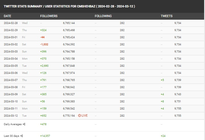 अब हमने एनालिटिक्स टूल सोशल ब्लेड के जरिए शहबाज़ शरीफ के एक्स अकाउंट को स्कैन किया। इस दौरान हमें पता चला कि 10 मार्च के बाद अब तक शहबाज़ शरीफ के एक्स अकाउंट पर कोई पोस्ट नहीं किया गया है। इससे इस बात की पुष्टि होती है कि वायरल स्क्रीनशॉट फर्जी है।