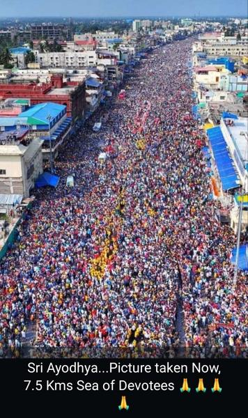 भीड़ की एक तस्वीर को सोशल मीडिया पर शेयर कर इसे अयोध्या का बताया जा रहा है। ऊंचाई से ली गयी इस तस्वीर में दूर दूर तक सिर्फ लोगों की भीड़ नज़र आ रही है। तस्वीर के साथ लिखा गया है कि ‘श्री अयोध्या, अभी ली गयी तस्वीर में भक्तों का 7.5 किलोमीटर लम्बा सागर।’