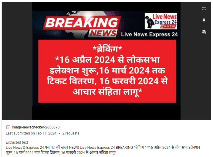 जांच से हम इस निष्कर्ष पर पहुँचते हैं कि भारत निर्वाचन आयोग ने लोकसभा चुनाव 16 अप्रैल से होने की घोषणा नहीं की है। वायरल दावा फर्जी है।