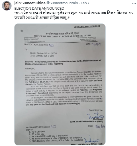 मुख्य निर्वाचन अधिकारी, दिल्ली कार्यालय ने भी एक एक्स पोस्ट में कहा है कि इस तारीख का उल्लेख केवल अधिकारियों के लिए आयोग की चुनाव योजना के अनुसार गतिविधियों की योजना बनाने के ‘संदर्भ’ के लिए किया गया था।