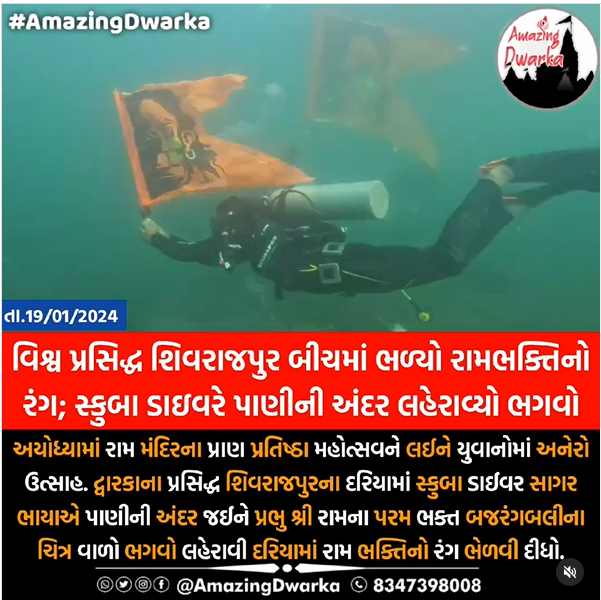 पानी के नीचे भगवा झंडा फहराने वाले गोताखोर के बारे में अधिक जानकारी खोजने के लिए हमने आदित्य एडवेंचर के डिवाइन स्कूबा के मालिक से बातचीत की। उन्होंने हमें बताया कि उनके यहाँ कार्यरत स्कूबा डाइवर ने प्राण प्रतिष्ठा कार्यक्रम से पहले राम भक्ति भाव से प्रेरित होकर शिवराजपुर समुद्र तट पर 30 फ़ीट की गहरायी में भगवा झंडा फहराया।
